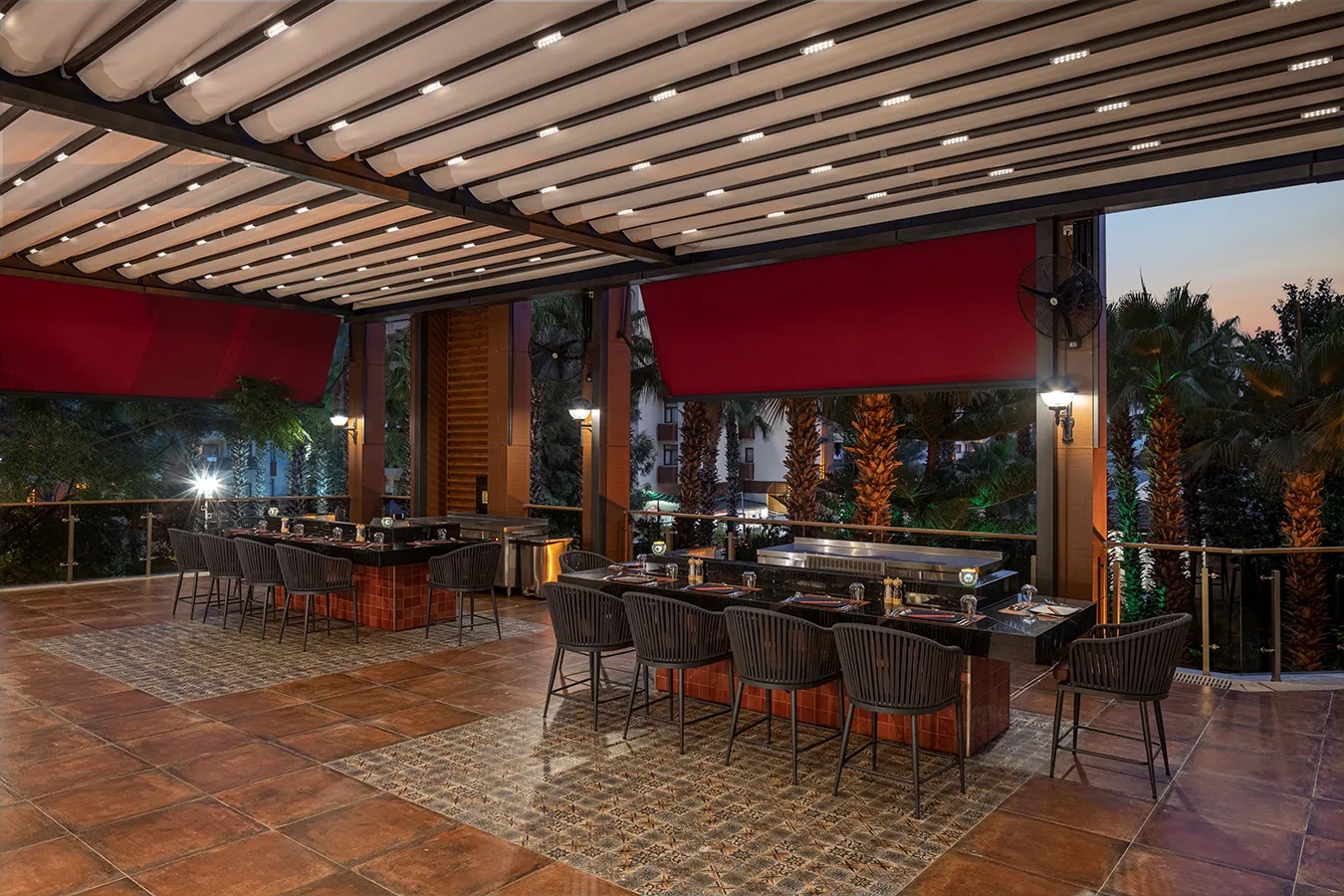 في مطعمنا "تيبينياكي ألا كارت"، ستشهد إتقان الطهاة لدينا بينما تختبر نكهات الذواقة، وسوف تختبر وليمة مليئة بالنكهات أمام عينيك. في هذا المكان، يقوم الطهاة الرئيسيون لدينا بإعداد مكونات طازجة وعالية الجودة بعناية وخلق نكهات رائعة أمامك. استمتع بتجربة فريدة بينما تستمتع بوجبتك.