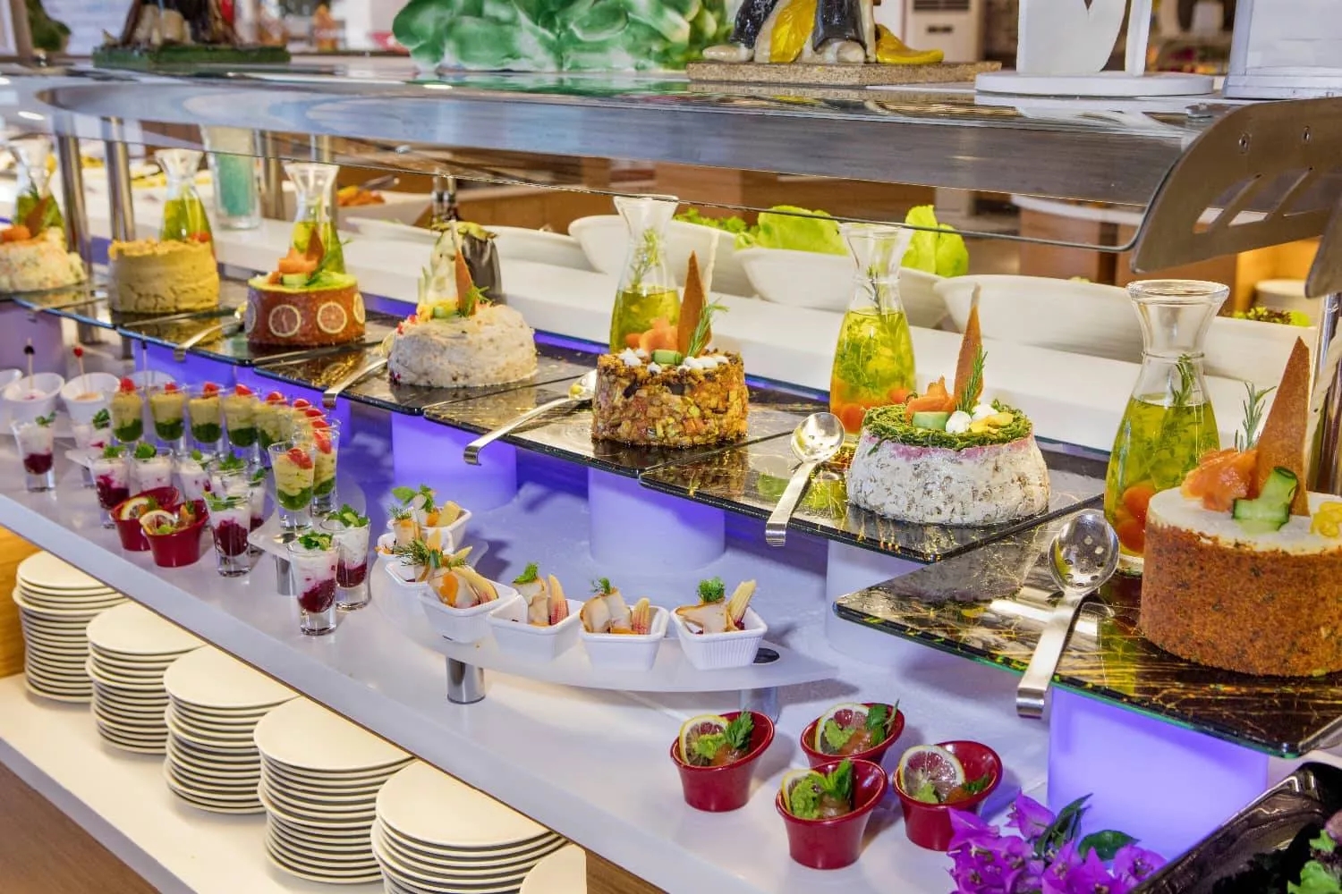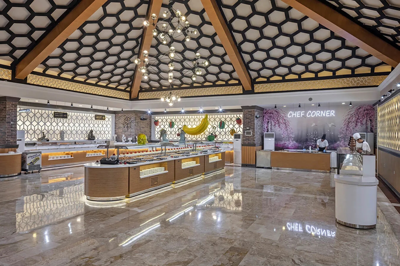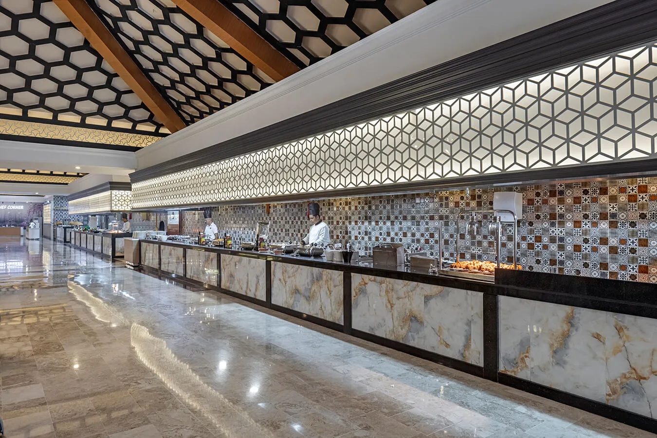 Our hotel's main restaurant has been carefully prepared to offer our guests an unforgettable dining experience. A wide range of international flavors are served for four meals: morning, lunch, dinner and night. With the open buffet and children's buffet, you and your family can choose from a wide range of options and enrich your table with the flavors that suit your taste. At every meal in our main restaurant, we work meticulously to make your dining experience unforgettable.