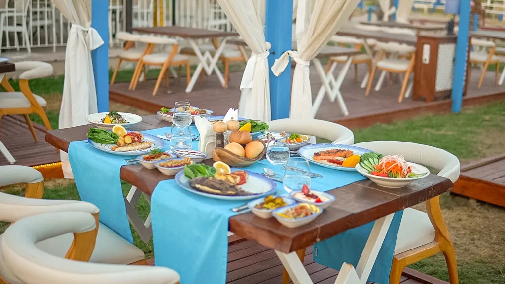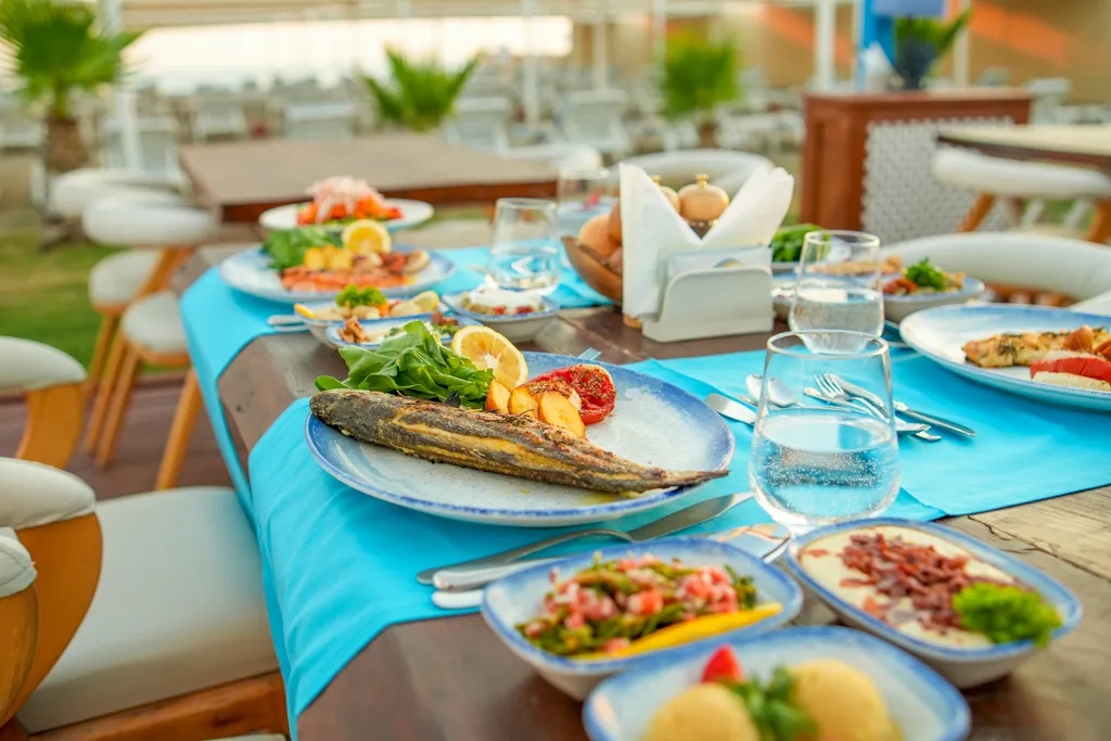 Nous proposons des saveurs uniques qui plaisent à tous les palais dans nos restaurants spéciaux à la carte qui font découvrir à nos clients des goûts différents. Vous découvrirez la richesse et la fraîcheur de la cuisine méditerranéenne dans notre restaurant à la carte Turkuaz. Vous êtes invités dans le monde magique de la Méditerranée dans ce restaurant où le bleu et le vert se rencontrent, avec les fruits de mer les plus frais, des entrées à l'huile d'olive et de délicieux plats méditerranéens. Vous pourrez découvrir les délices de la cuisine japonaise dans notre restaurant Teppanyaki à la carte. Les plats teppanyaki, préparés avec les spectacles accrocheurs de nos maîtres chefs, arrivent à votre table avec l'art de la cuisine japonaise. Prenez place dans ce voyage gustatif inoubliable. Dans notre restaurant à la carte Indigo, nous offrons un paradis aux amateurs de viande. Nos steaks, où la viande de la plus haute qualité est soigneusement sélectionnée, préparée et couronnée de sauces spéciales, vous offrent le vrai goût et l'arôme de la viande. Préparez-vous à être fasciné par le goût de la viande dans l'atmosphère élégante et stylée d'Indigo. Nous sommes très heureux de vous accueillir, nos précieux invités, dans ces restaurants spéciaux, dont chacun a été soigneusement conçu. Rejoignez-nous pour découvrir ce goût unique.