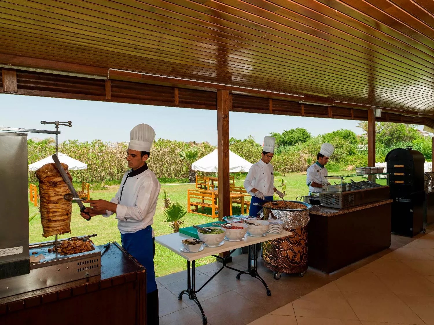 Он предлагает нашим гостям деликатесы, такие как пицца, пита, лахмакун, гамбургеры и сэндвичи, а также горячие и холодные напитки в неповторимой синеве Средиземноморья. Наше пляжное кафе предлагает нашим гостям незабываемые впечатления в расслабляющей атмосфере в сопровождении умиротворяющих звуков моря. Здесь вы можете приятно провести время с нашими вкусными закусками и освежающими напитками, наслаждаясь пляжем.